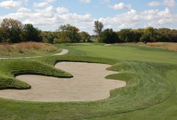 A portion of the land used for the golf course was leased from the university and the remaining was farmland. A floodway needed to be moved for development of the course and owners worked with the Department of Natural Resources to keep the course in tune with its surroundings. The course makes use of the considerable wetlands on the property, blending itself into the natural environment.